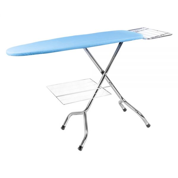 Итак АТ-01 это: Классическая конструкция, широкая гладильная поверхность, легко складывается для хранения, занимает немного места. Имеет надежную и устойчивую нержавеющую подставку для утюга и нержавеющую полку для белья. Нержавеющие хромированные опоры с резиновыми насадками гарантировано выдерживают нагрузку до 70 кг. Полностью исключается скольжение доски во время эксплуатации. Многослойный гладильный профессиональный чехол и паропроводящая перфорированная поверхность, пропариваемая наквозь и позволяющая отводить конденсат. AT-01 изготовленa в хромированном металле, особая обработка cataphoresis против возникновения ржавчины делает гладильную доску устойчивой возникновению коррозии. Широкие хромированные трубчатые опоры, до 32 мм. (1,25 дюйма.) диаметра, дают хорошую устойчивость и стабильность.